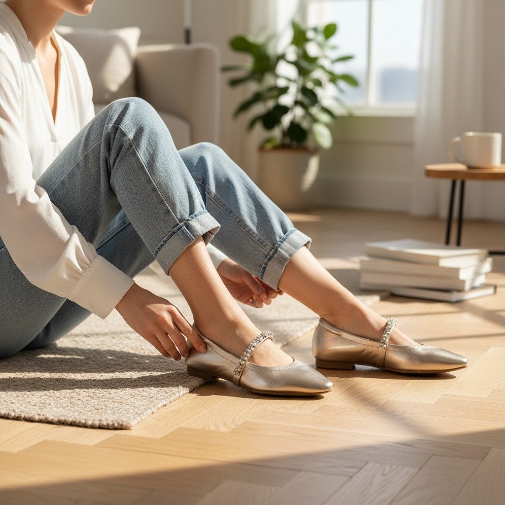 Low heeled flats decorated with crystal and pearls.Made from lambskin The insole is made from memory foam. The sole is thick and soft for you to wear comfortably all day long.