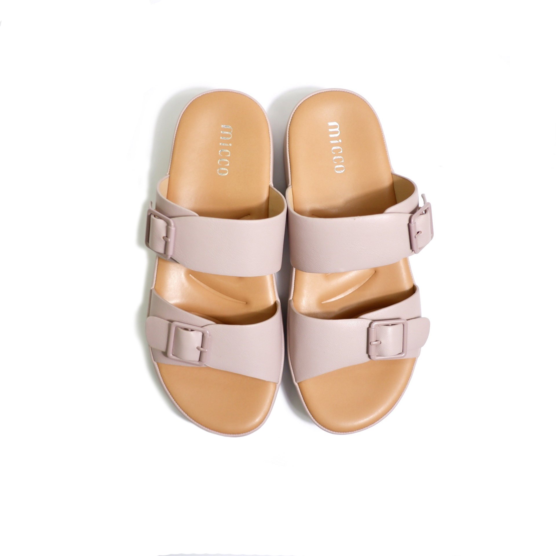 รองเท้าแตะสไตล์มินิมอล ดีไซน์สายคู่พร้อมหัวเข็มขัดปรับระดับได้ ใส่สบายทุกย่างก้าว พื้นนุ่มรองรับรูปเท้า เหมาะกับวันชิลล์หรือแมทช์ลุคเรียบหรูสบายๆ ได้ทุกโอกาส